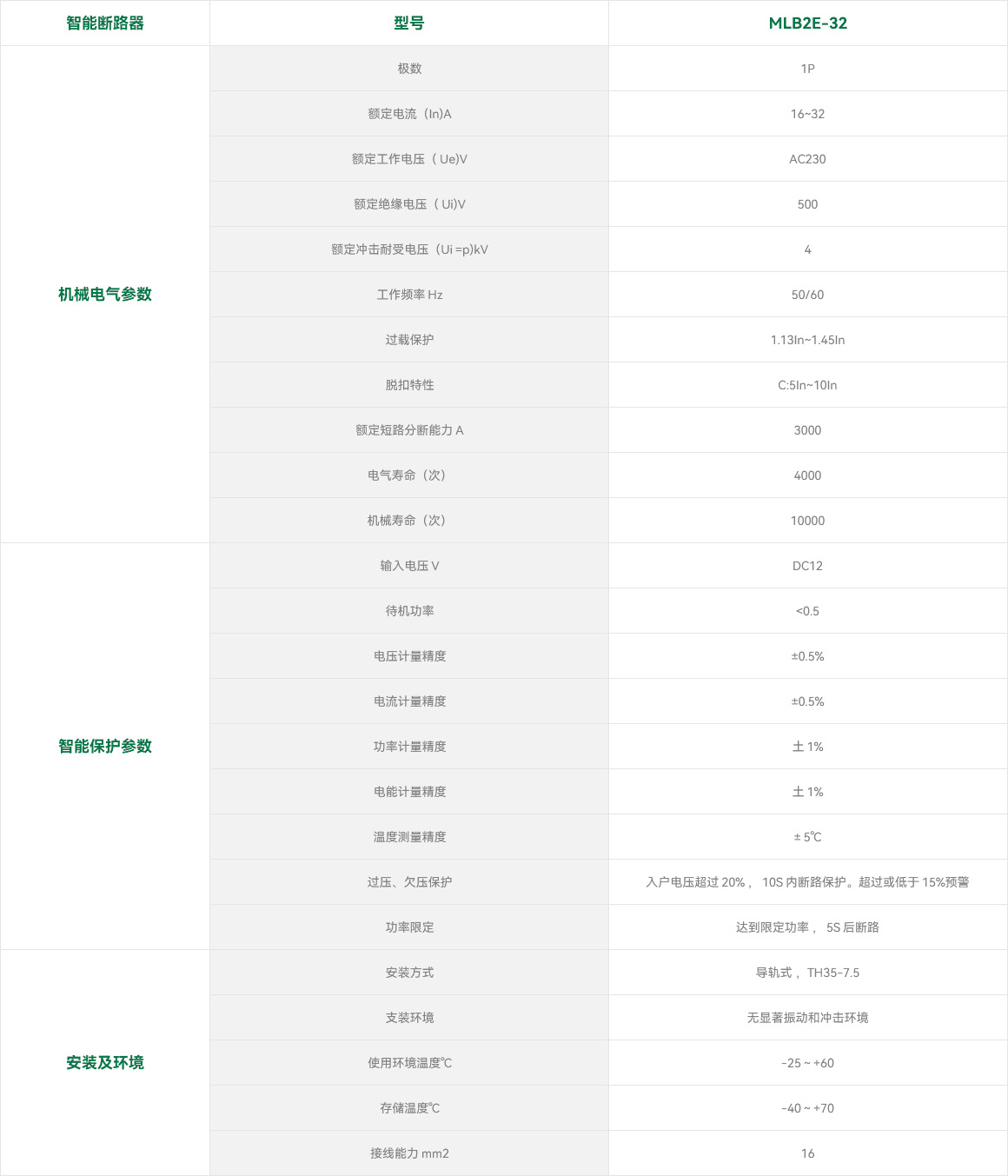 MLB2E-63/1断路器适用于交流50/60Hz,额定电压 230V,额定工作电流至63A的线路中,可本地手动分合,也可通过手机小程序及云平台远程控制,实时监测线路中电流、电压、功率、频率、温度、用电量等参数。对过压、欠压、过载发送预警,并实行自动断电保护,保障用电安全。