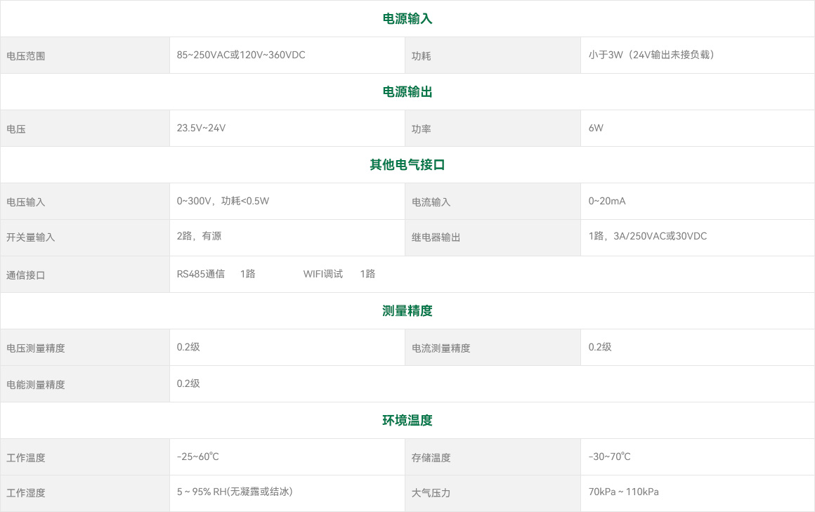 满足10个三相回路或30个单相回路的全电量监测,可采集电压、电流、有功功率、无功功率、功率因数、相位及有功电度、无功电度